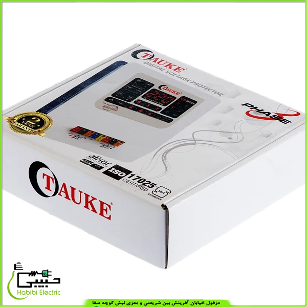 دستگاه محافظ ولتاژ تااوکه سه فاز 3x40 آمپر با توان 3x9000 ولت آمپر و ولتاژ کاری 170 تا 265 ولت میباشد. مناسب جهت حفاظت از وسایل خانه و ماینر می باشد. ساختار بدنهی این محصول از فلز و رنگ الکترواستاتیک بوده که در مقابل گرما تا 90 درجه و رطوبت 95 درصد مقاوم بوده، حداقل ولتاژ این دستگاه 170 ولت بوده و این به این منظور بوده که اگر ولتاژ کمتر از 170 ولت باشد، جریان قطع میشود. این دستگاه مجهز به کلید حذف زمان تاخیر برای برقراری هرچه سریعتر جریان برق و قابلیت تنظیم ولتاژ جریان بالای قطع در سه حالت 245 ولت ، 255 ولت و 265 ولت.